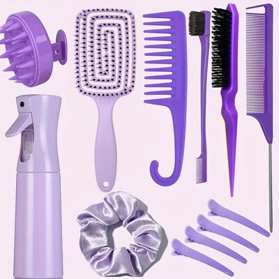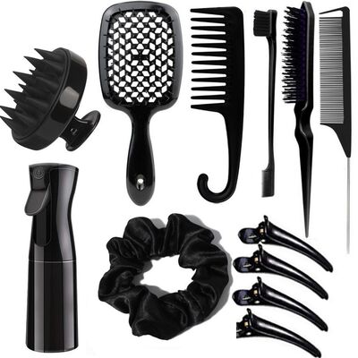 Brosse démêlante en plastique à dents larges et ensemble de peignes pour le coiffage des cheveux