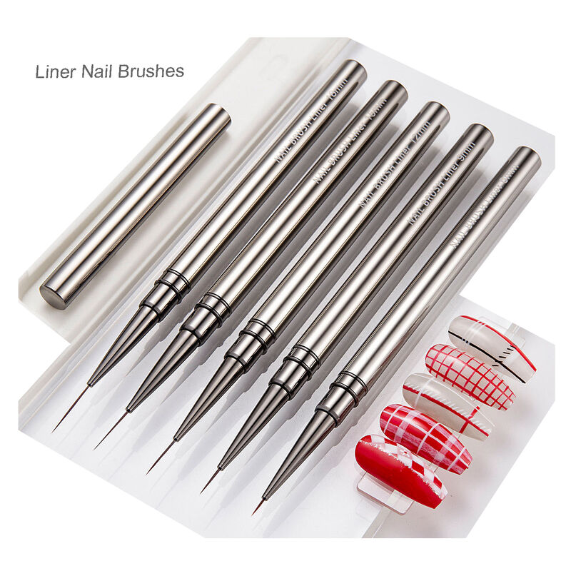Customized Logo Nylon Nail Art Liner Brushes 5 Piece Set Gunmetal Acrylic Handle
