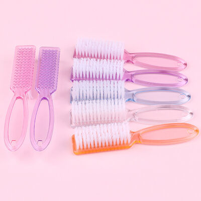 FOCSTAR Transparent Long Handle Plastic Nail Brush Colorful Toe Fingernial Nail Cleaning Brush