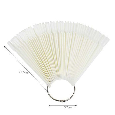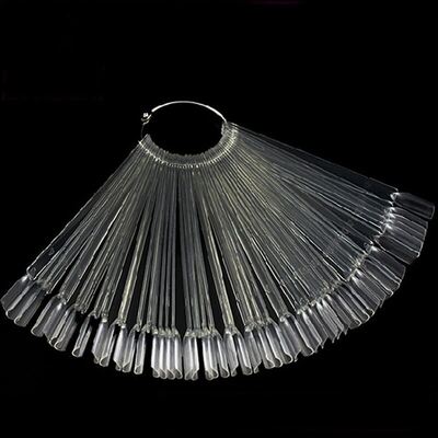 50 Tips Transparent Fan-shaped Nail Art Tips Display Polish Board Display Practice Sticks Tool with Metal Screw Split Ring Holder