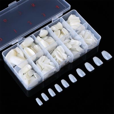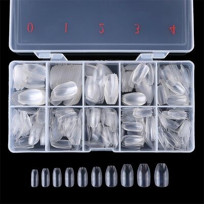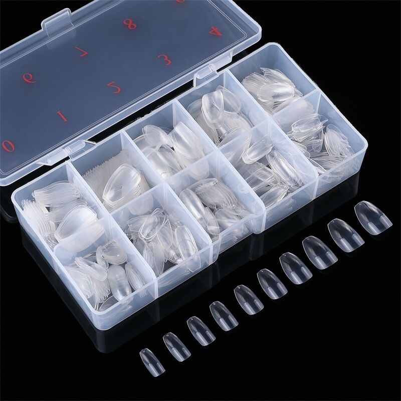 Short Ultra Thin Clear Full Cover Acrylic False Nails 500pcs in Plastic Box