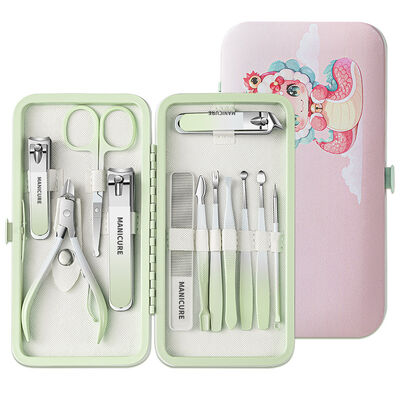 Cartoon PU Leather Girly Nail Cuticle Manicure Set Stainless Steel Pedicure Kit