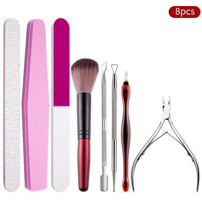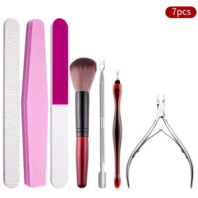 1. Double sided nail files and block to trim or create ideal nail shape-square 2. Stainless steel cuticle nipper, clipper and pusher to groom nails 3. Nail brush for nail art painting |