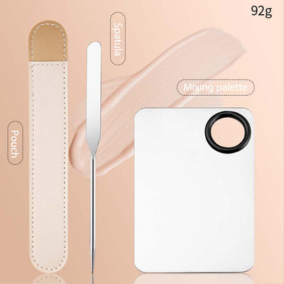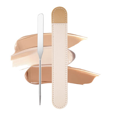 Silver Stainless Steel Mixing Palette Makeup Cosmetic Spatula with Leather Case