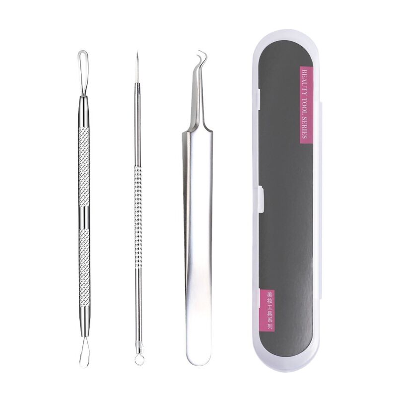 | item | 3 in 1 Stainless Steel Acne Needle Set Blackhead Pimple Needle Acne Clip Tweezers Beauty Needle Set |