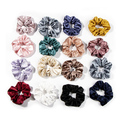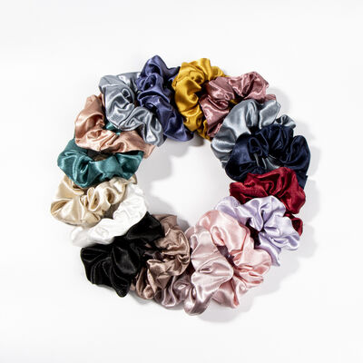VARIETY: You can amaze each day with a different stylish color from 15 colors HAIR BANDS FOR WOMEN'S HAIR: Cute Big and Soft scrunchy with a Silk like Handfeel HAIR ACCESSORIES FOR WOMEN: Enjoy our elastic satin scrunchies hair ties for thick hair |