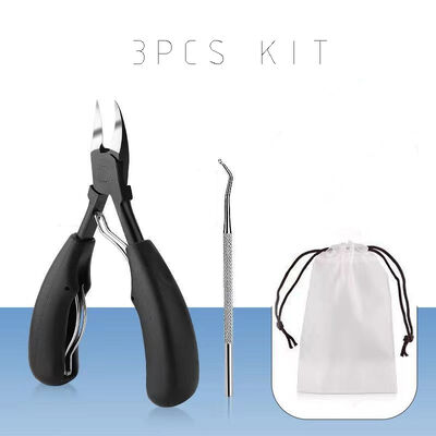 Features | Black plated toenail cuticle nipper has better performance on anti-rust and more durable. You could choose to order single nipper or nipper+ nail pick + bag 3 in 1 set. SHARP AND DURABLE Professional toenail clippers are made of high quality surgical grade stainless steel for rust and durability. The tools are very sharp and can cut off any rough edges without pain.New Curved Blade Design Toe nail clippers for men are designed with a curved blade that conforms to the shape of our nails or toenails. The curved blade avoids injury when cutting nails and relieves pain caused by nail problems. ERGONOMIC DESIGN Toe Nail Clippers adult thick nails seniors use an ergonomic handle for comfort, firm grip and easy cutting. EASY TO CLEAN Simply wipe the blades with alcohol after use and slide the spring down for storage. |