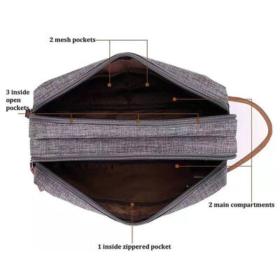 * Portability: A hanger leather handle on the side makes it easier to hang while in use, the light weight makes it easier to carry. * Practical large capacity: allows you to easily put down a razor, toiletries and a lot of other things during use, making your travel easier. * Multiple uses: This toiletry bag is perfect for both men and women, for business or pleasure, and can even make a great gift for a friend. * Perfect organization: The wash bag is divided into several compartments. Larger compartments can store larger toiletries |