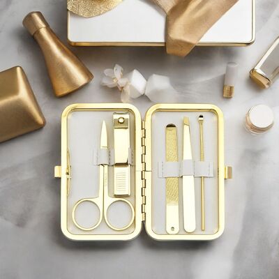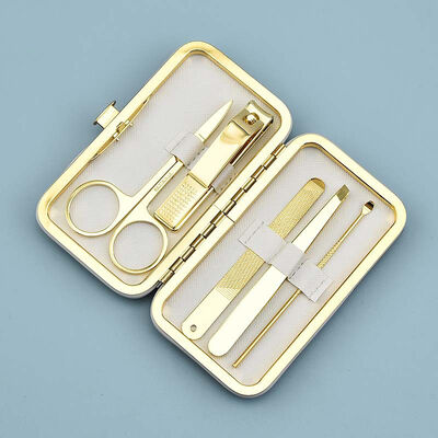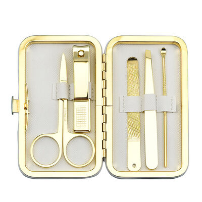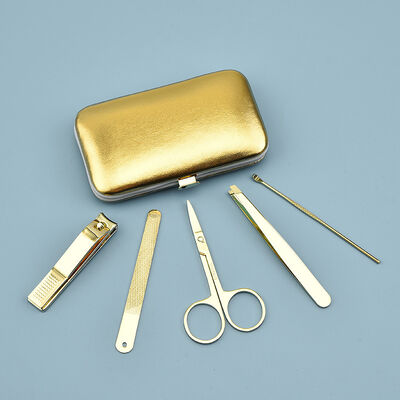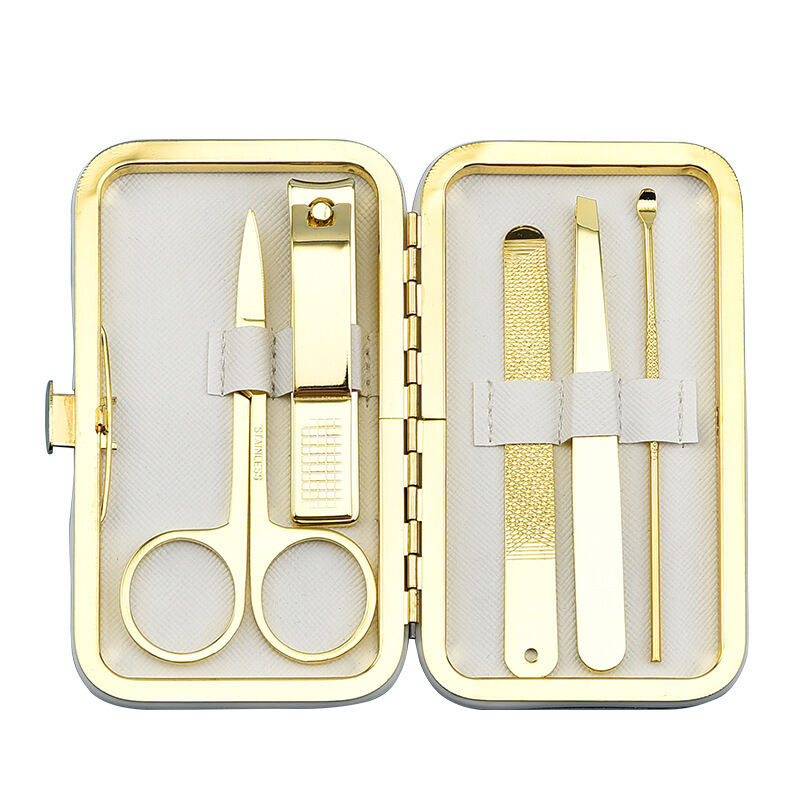 2021 New 5pcs Full Gold Color Plated Manicure Set with Gold Case Luxuriour Nail Clipper Kit
