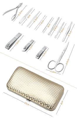 12pcs Stainless steel manicure set pedicure kit in diamond pattern gold PU case