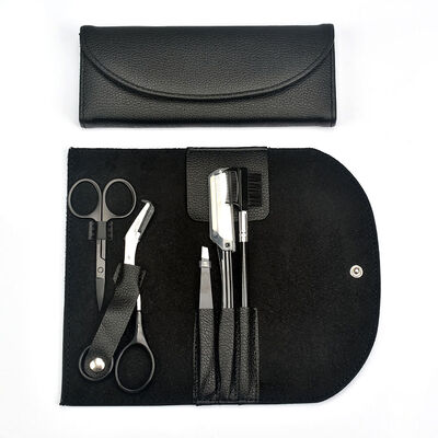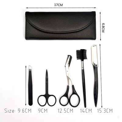 FOCSTAR 5 Pieces Eyebrow Grooming Kit Eyebrow Pencil Razor Scissors Eye Brow Trimmer Brush Comb in PU Case (BT9018)
