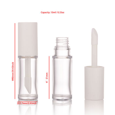 Professional 10ml plastic lip gloss tubes designed for custom branding and screen printing applications. Ideal for lip gloss, blush, lip tint oil, and cosmetic product packaging.