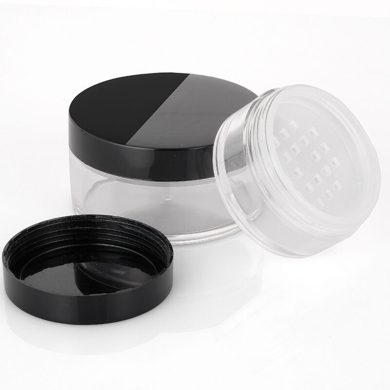 Professional face powder blusher makeup cosmetic jars with sifter lids, designed for compact storage and easy use.