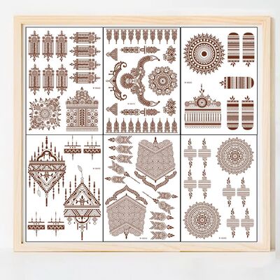 * ลวดลายหลากหลาย - มีลวดลายกว่า 80 แบบ รวมถึงลายลูกไม้ ลายมันดาลา ช้าง ดอกไม้วินเทจ และลายละเอียดอื่นๆ เหมาะสำหรับตกแต่งรอยสักชั่วคราวในงานแต่งงาน งานปาร์ตี้