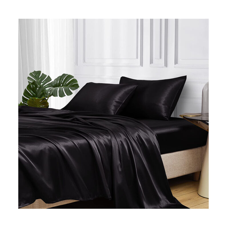 ผ้าปูที่นอนไหมเทียมสีพื้น ผ้าปูที่นอนซาติน ชุดเครื่องนอนผ้าไหม